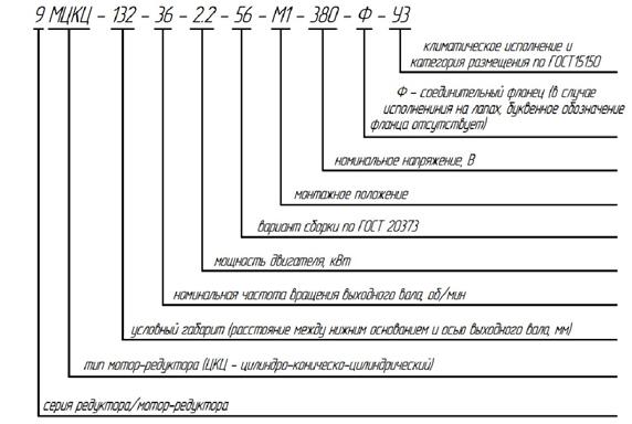 9МЦКЦ-100-56…Ф – Цилиндро-коническо- цилиндрический мотор – редуктор с фланцем и полым шпоночным валом;